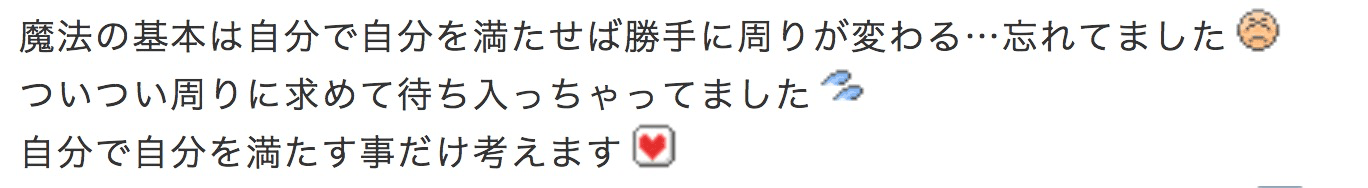 それが魔法ですから。自分で自分を満たせば、周りが勝手に変わる ってのが基本ですからね。覚えておきましょうね