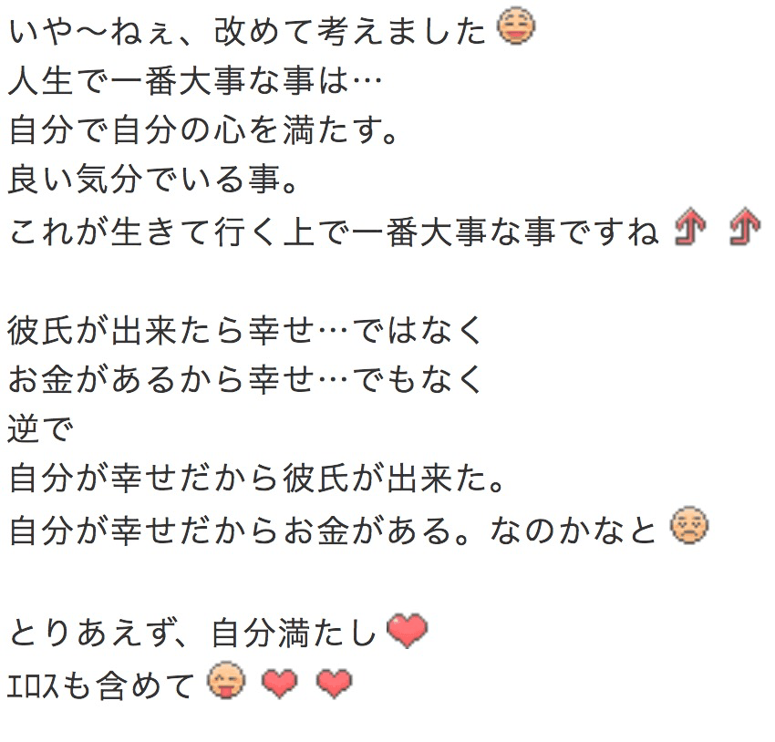 みんなの今思ってる100倍以上に、自分で自分を満たせる部分は多いですから