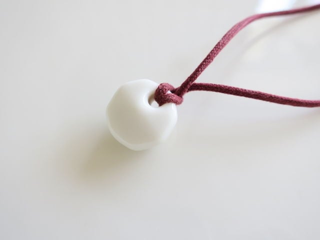 こんな風に、紐の両端にそれぞれ付ける感じですね。首元と、胸元に来る感じで付けてもオッケーです。そうすると更に効果が増すので